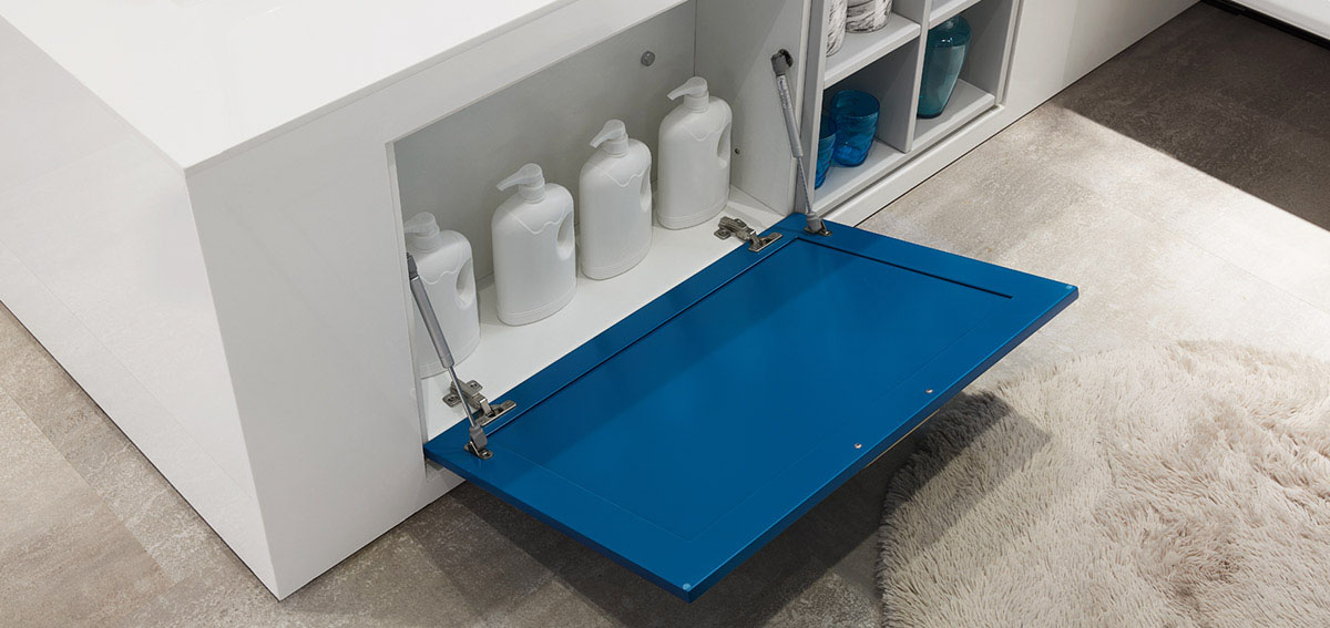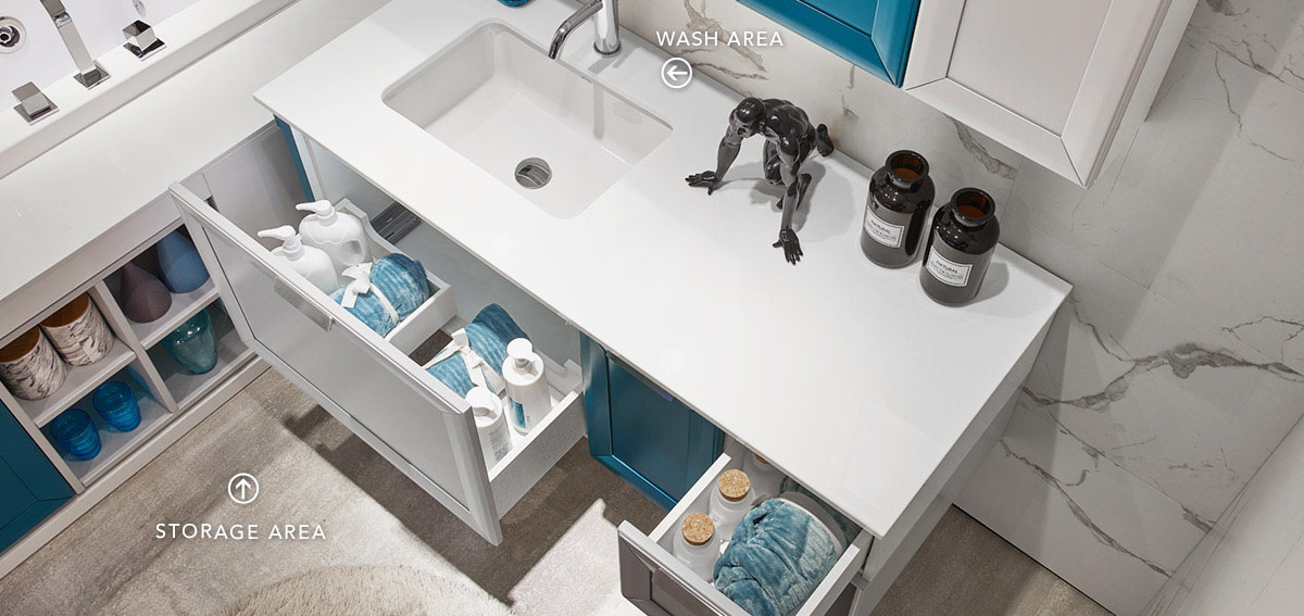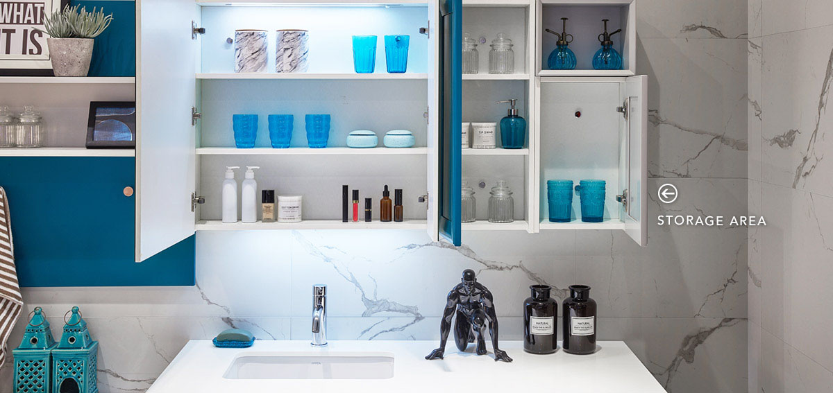 Mirror cabinet with dark tone lacquer finsh gives this bathroom a peaceful look with the clean lines.