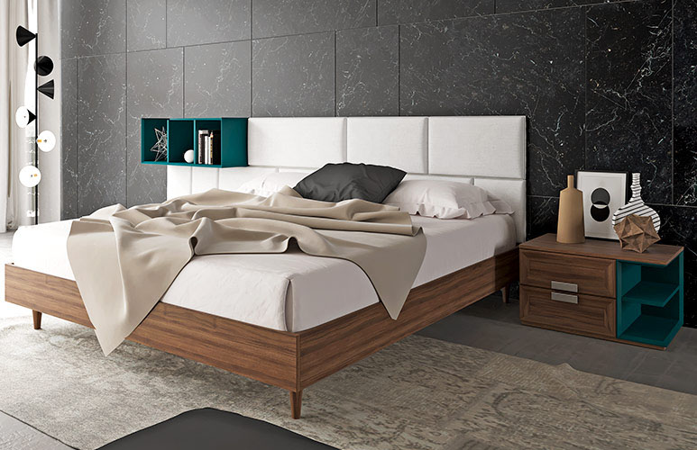 Give your bedroom a warm and modern look with this wood grain pvc and blue lacquer nightstand. This design has two open shelves, which is convenient for you to put some frequently used items.