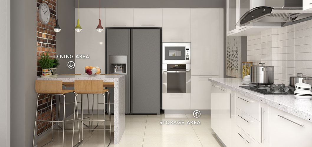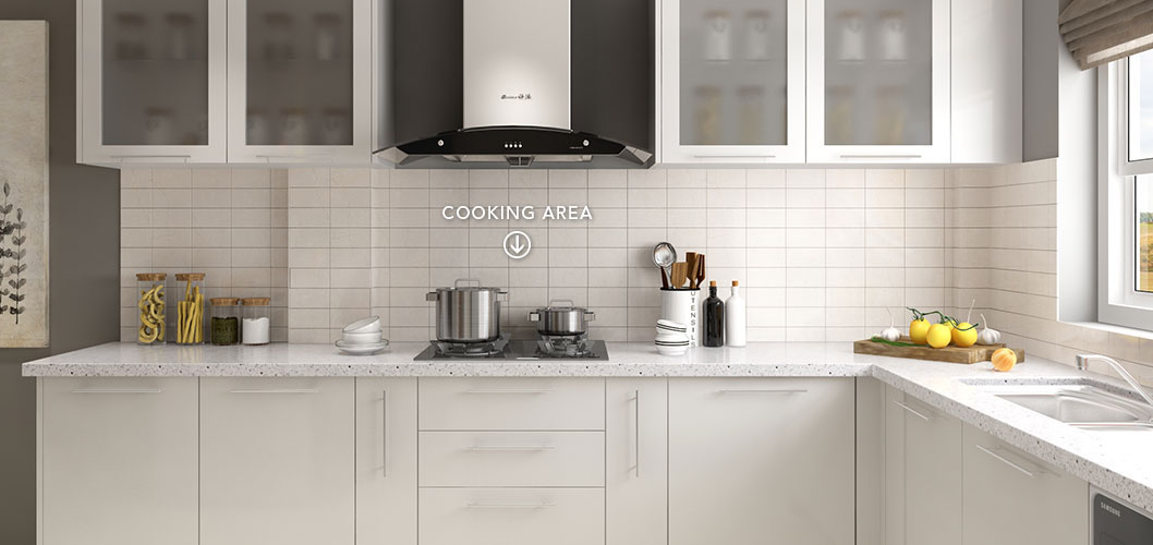 This kitchen is not so big but with reasonable layout. Custom kitchen cabinets on either side of range hood maximize the storage space.