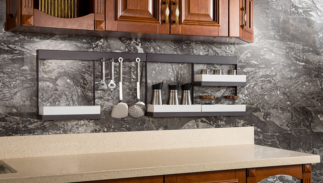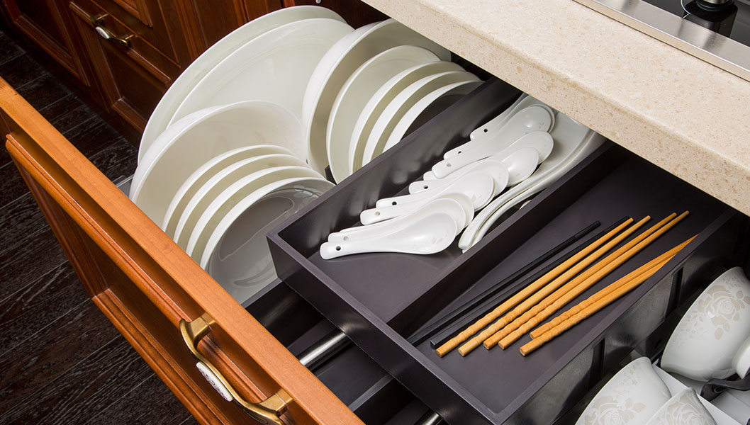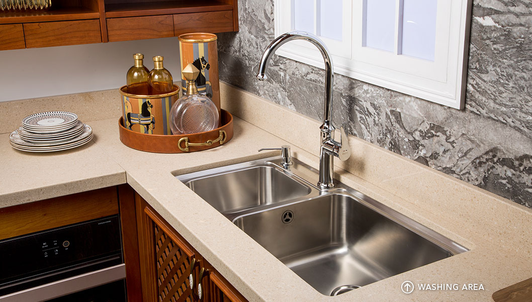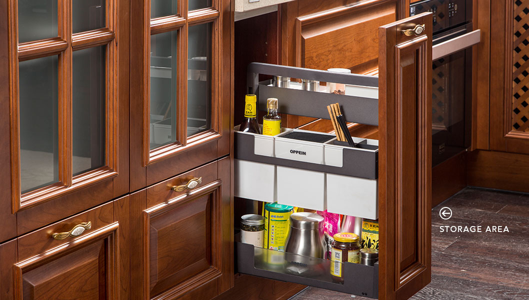 This dark wood cherry kitchen cabinet seems elegant and marvelous. L-shaped kitchen design makes full use of the space.